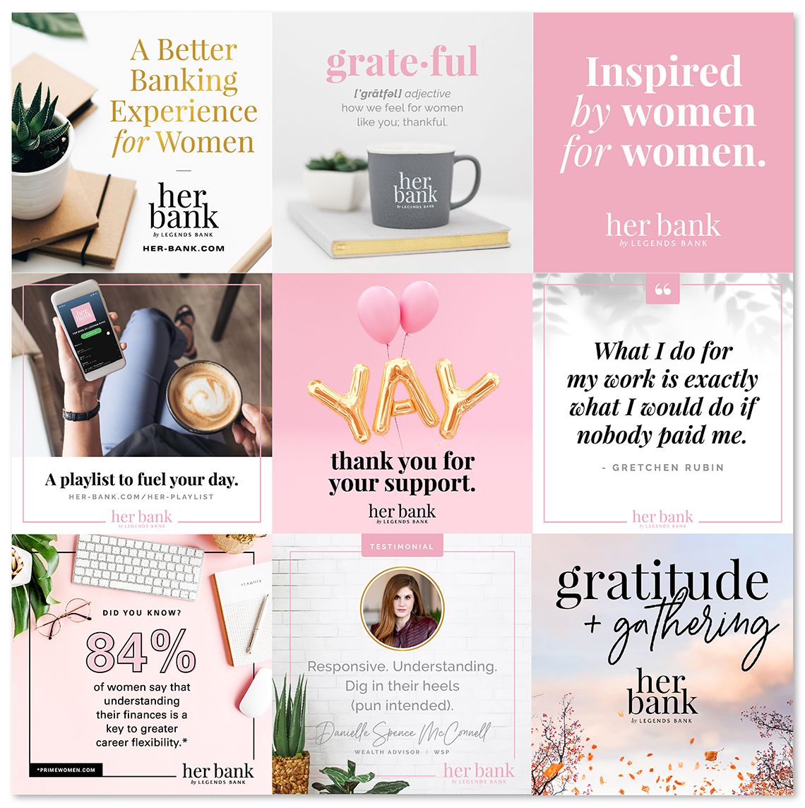 Unlike traditional banking brands or campaigns, Her Bank was created as a lifestyle brand to be a supportive and educational resource and provide a better banking experience for women.