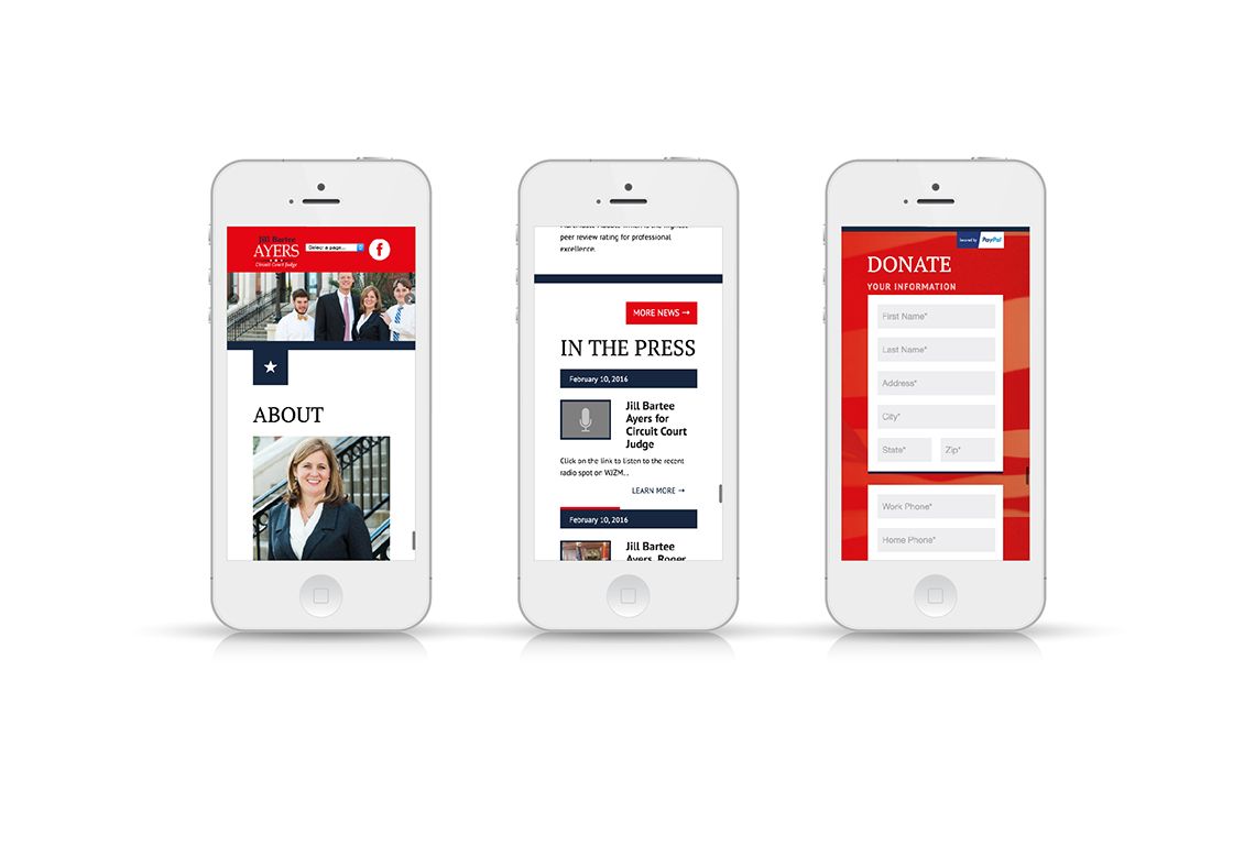 When Jill Bartee Ayers was running for Circuit Court Judge, she came to Thrive for a responsive website that communicated her platform in a concise and visually pleasing way. A custom contact form made it easy for users to get in touch with the Judge Jill Ayers campaign with any questions or comments. The site also linked to her social media accounts allowing those following the campaign to stay up to date. Following her successful campaign, Judge Jill Ayers no longer needed this site to be live, but you can check out these fun screenshots to see our work!