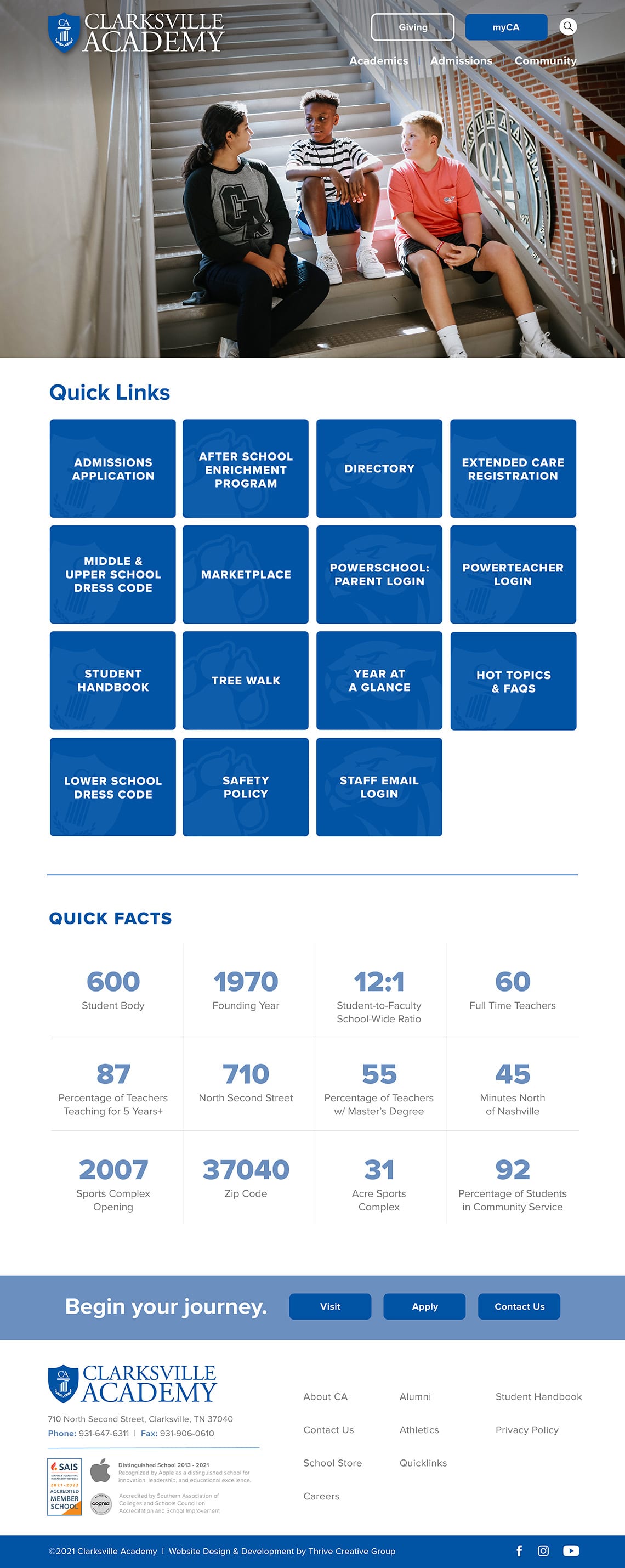 This is not the first private school website redesign the Thrive team has completed. Thrive Creative Group had to pleasure to help Clarksville Academy with a previous website redesign in 2017.