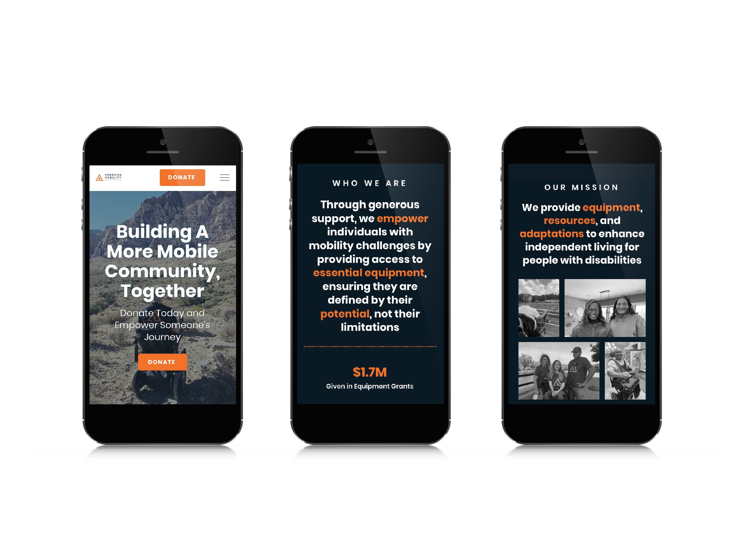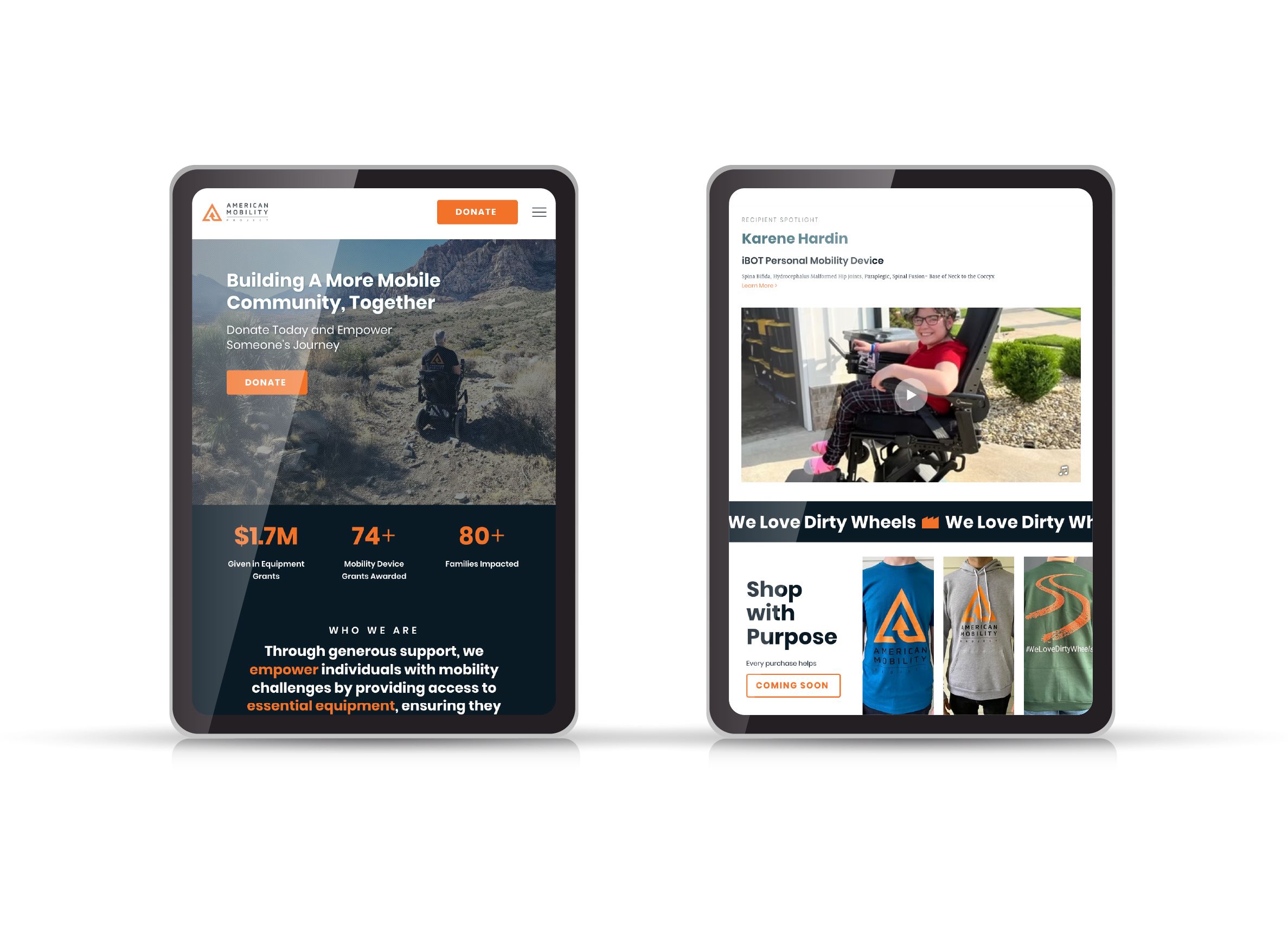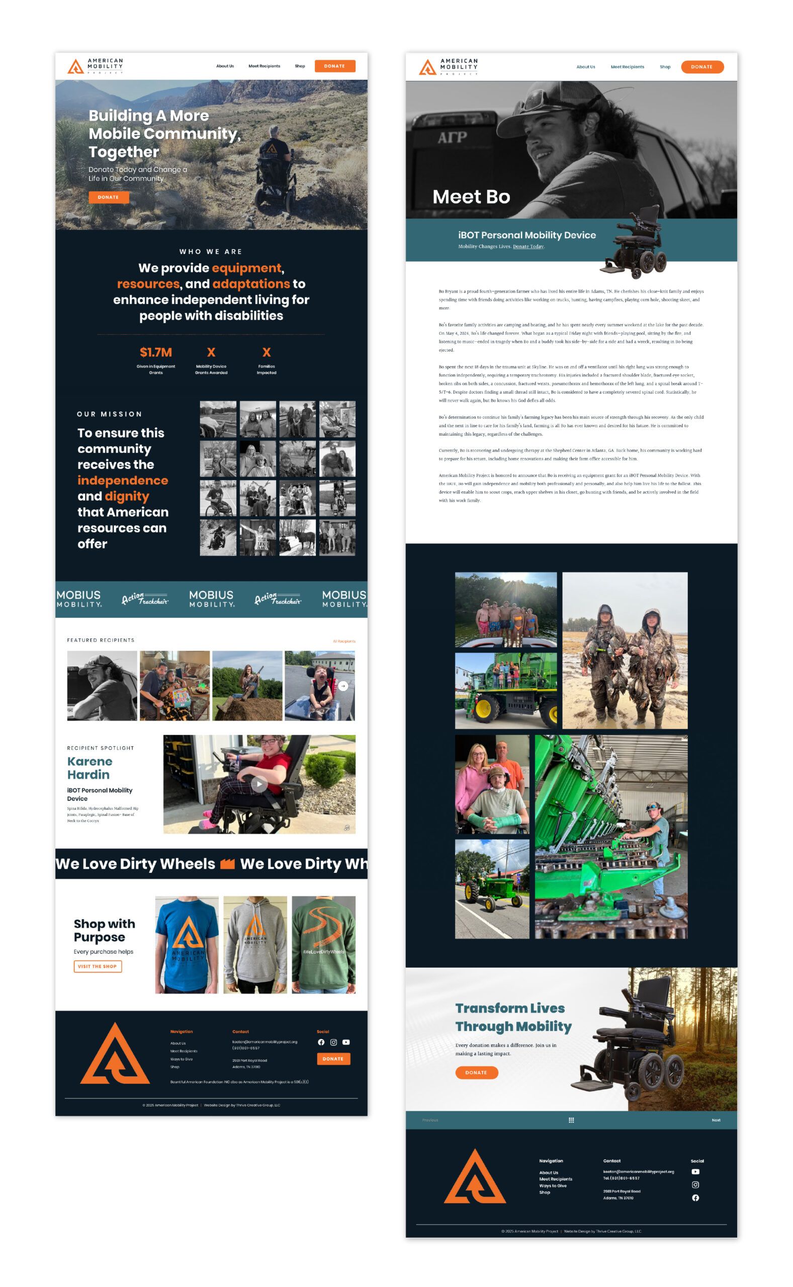 Seth, on our design team, put it best: “We set out to create a site that embodies American Mobility Project’s unwavering commitment to helping others. The new design features a clean layout, bold typography, and a prominent focus on the people they’ve served. The website now feels more approachable, allowing AMP’s life-changing mission to take the spotlight.”
