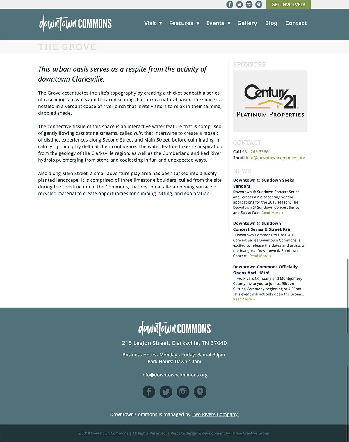 The Downtown Commons is a beautiful new green space and urban park district downtown Clarksville, Tn that was in need of a website (and brand!)